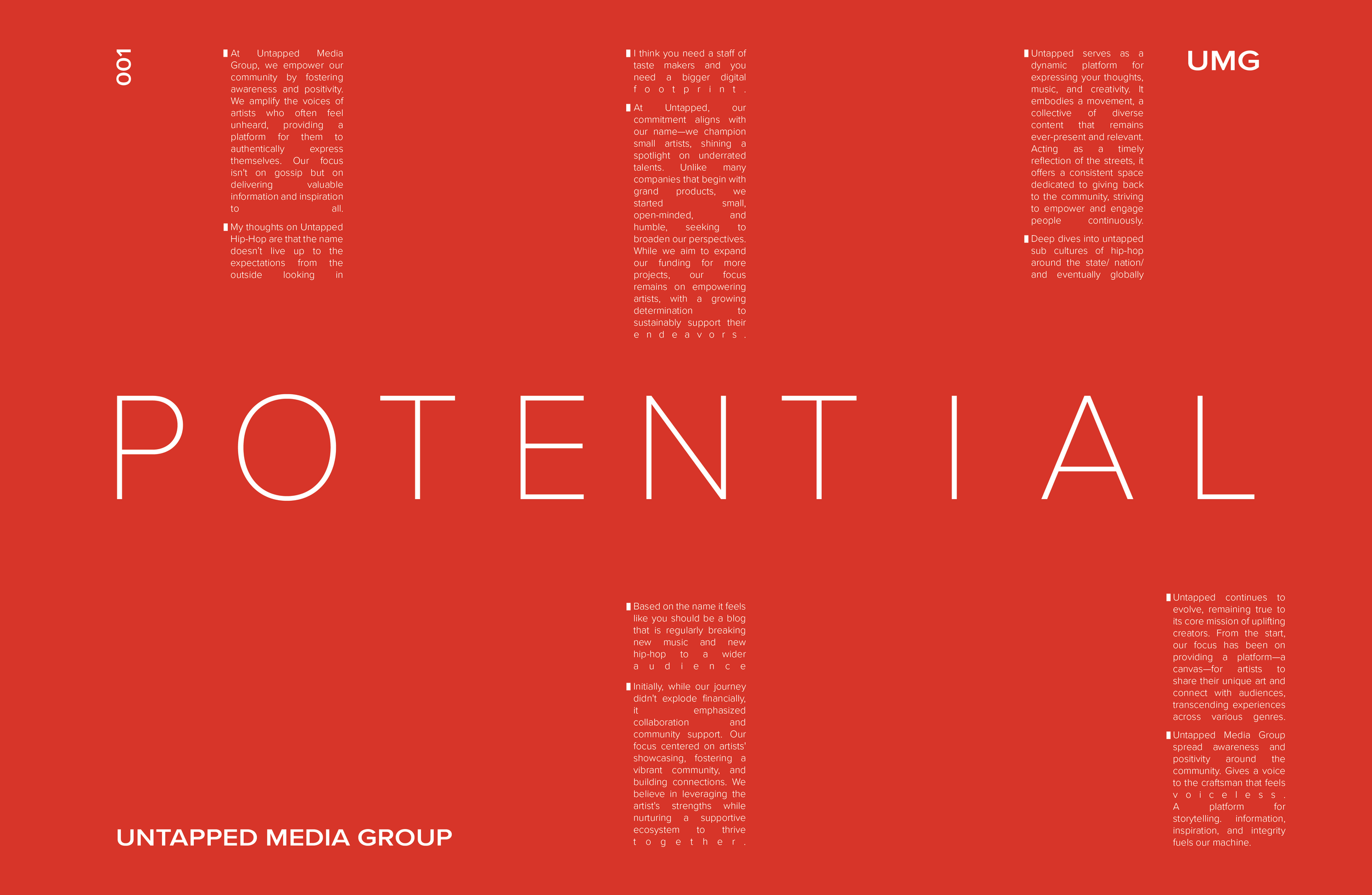 Creating a captivating platform that ignite imagination, spark inspiration, and provoke genuine conversation. “UMG”, is driven by authenticity and a commitment to crafting unique experiences for our audience.